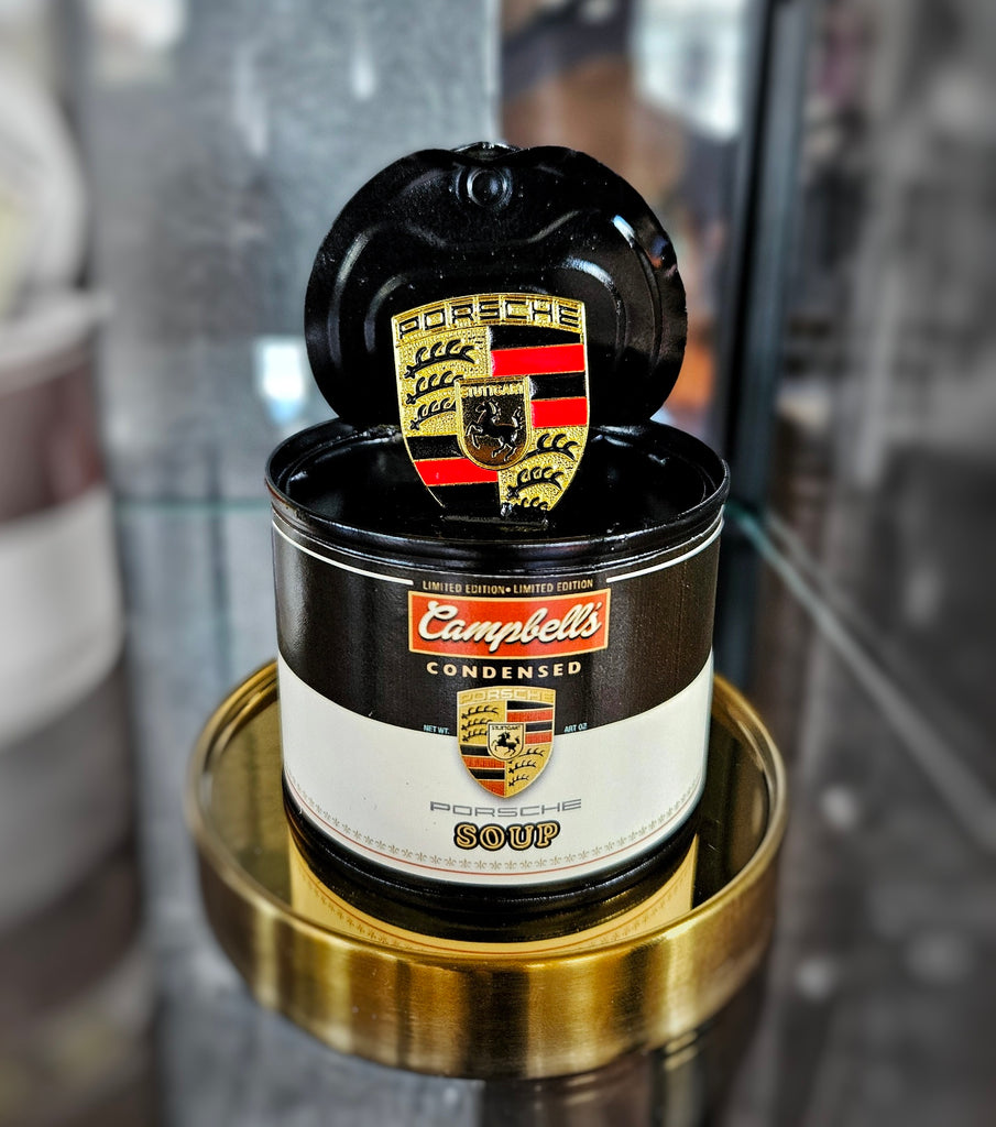 💥 Design trifft Drive: Die klassischen Campbell’s Dosen wurden neu interpretiert – mit geöffnetem Deckel und einem originalgetreuen Autoemblem im Inneren.